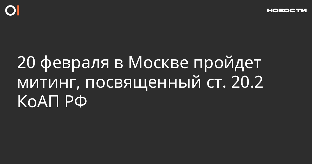 20 февраля 2012 года с 18.00 до 20 часов 2 минут на Пушкинской площади в Москве пройдет митинг в форме собрания-встречи против судебного преследования граждан по статье 20.2 КоАП РФ, на котором будет объявлено о создании Комитета 20.2. В ходе острых перформансов и акций свободного формата общество увидит, кого именно власть обвиняет по этой статье и какие абсурдные формы принимает это преследование.