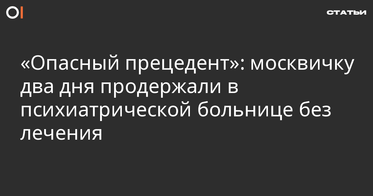 Из ОВД по вызову полицейских Беляеву забрали в психиатрическую больницу № 1 имени Алексеева, где она провела двое суток. Лечения при этом ей не назначали. Сейчас женщина пытается добиться, чтобы ее удержание в больнице признали незаконным и выплатили ей компенсацию морального вреда.