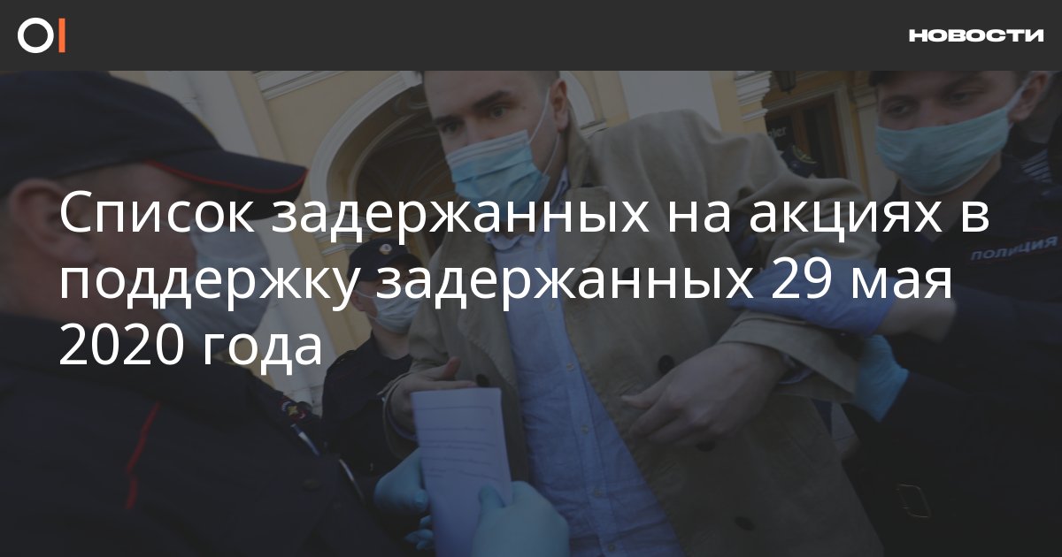 29 мая в Москве и Петербурге продолжились одиночные пикеты в поддержку задержанных ранее активистов и журналистов. Как и днем ранее, всех участников пикетов задержала полиция. ОВД-Инфо публикует списки задержанных. По данным на 20:00, всего задержали не менее 40 человек.