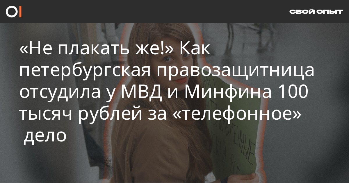 Сразу после начала войны петербургская правозащитница Мария Малышева стала одной из фигуранток сфабрикованного дела о телефонном терроризме. В качестве вещдока у нее изъяли сборник советских анекдотов. А потом дело прекратили и Марии присудили 100 тысяч рублей моральной компенсации. Она рассказала ОВД-Инфо, как ей это удалось, и передала привет задержавшим ее оперативникам: «Дима и Артем, вы нормальные мужчины».