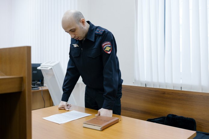 Дмитрий Палтусов, адвокат Олега, ходатайствует о передаче дела в другой суд — по месту прописки своего подзащитного. Судья ходатайство не удовлетворяет.