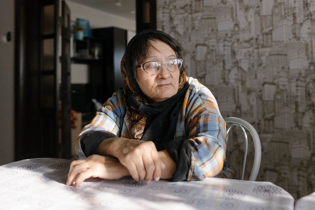 «Еще в 2014 году сына забрали туда, как в командировку, он в ОМОНе служил, — говорит Людмила Васильевна, женщина с черными волосами, выбивающимися из-под платка, и красивыми глубокими глазами. — Потом в 2022 году — снова туда, три месяца был, его контузило. Сейчас сидит на пенсии — 18 тысяч. Мрак. Он контуженый два раза. И куда нам обращаться? Мама, говорит, успокойся. Ему сказали: будете зачищать. Они завоевали деревню, а после нужно сделать зачистку. И весь их отряд попал под бомбежку. И ничего им не заплатили. Только пенсия».