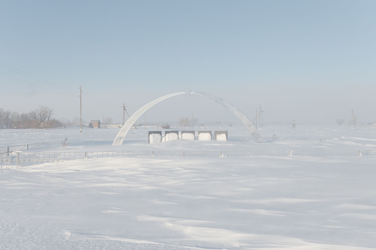 Еще из окна видно памятник жителям деревни, погибшим в Великой отечественной войне, — серая дуга и несколько черных гранитных плит — и одинокий общественный туалет посреди степи. Все это появилось здесь в прошлом году, «торжественное открытие» прошло 4 июня.