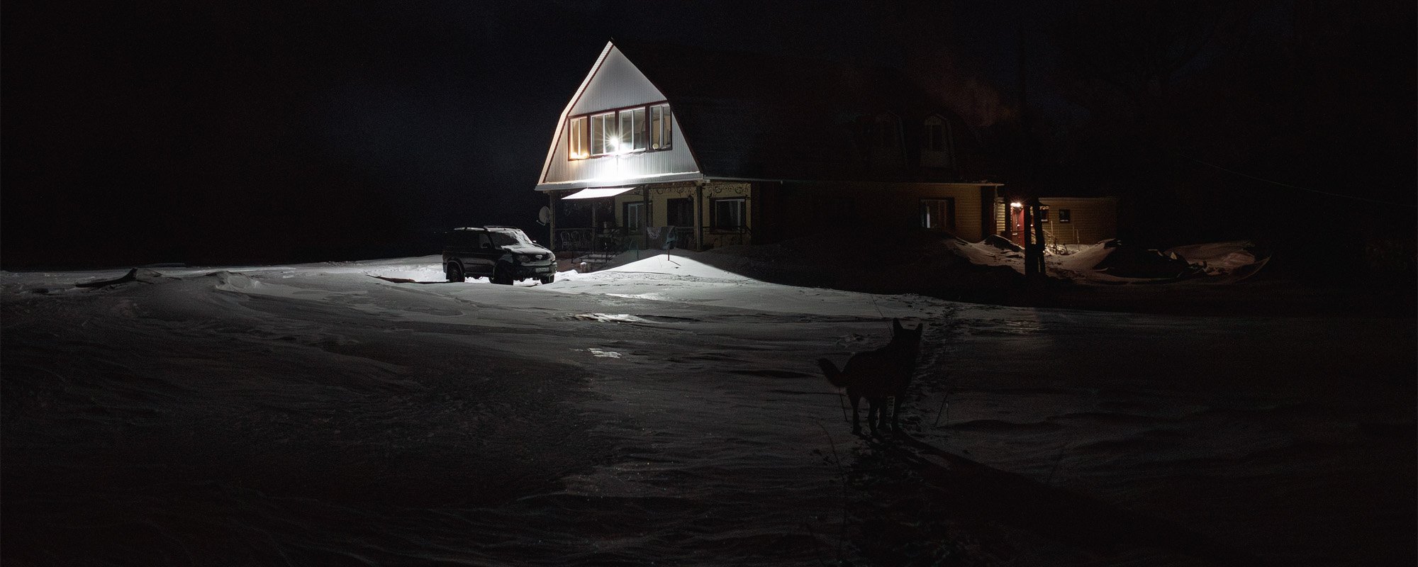 «Дівчатка! Ми заблукали, я зараз вийду дорогу подивитися, а ви тут годинку зачекайте!» — кричит Гриша, оглядываясь назад, но, видя наши потрясенные лица, раскатисто хохочет, и снегоход взбрыкивает снова. Через несколько минут среди пустоши вырастает дом.
