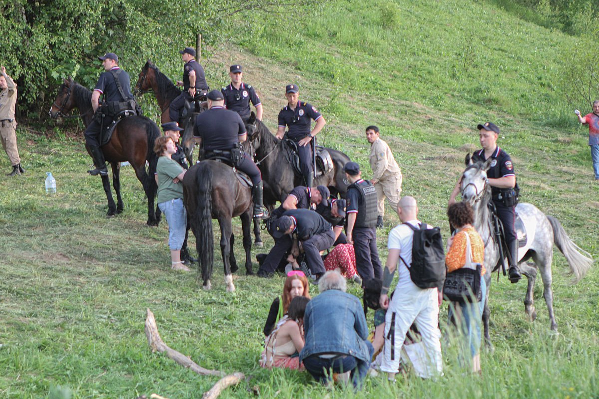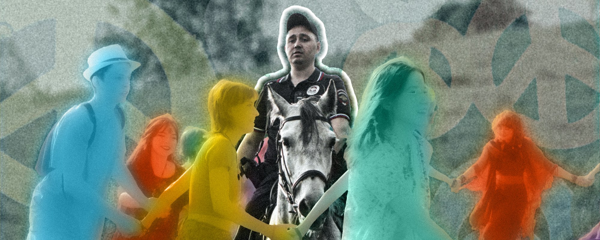 «Несколько людей в форме там и так „дежурили“, конная полиция своим присутствием еще больше напугала народ, — говорит Олег. — На входе я видел автозаки. Там же стояли и полицейские, которые не разрешали никому входить в парк, только выходить позволяли. А те, что на конях, начали требовать покинуть поляну под тем предлогом, что „Хиппятник“ — это несогласованная акция. Но как это может быть несогласованной акцией, если у мероприятия даже нет никакой четкой программы? Люди приходят из года в год, потому что это традиция. Никакой охраны, ЧОПа в парке я не видел. Администрация помогать людям тоже не спешила».