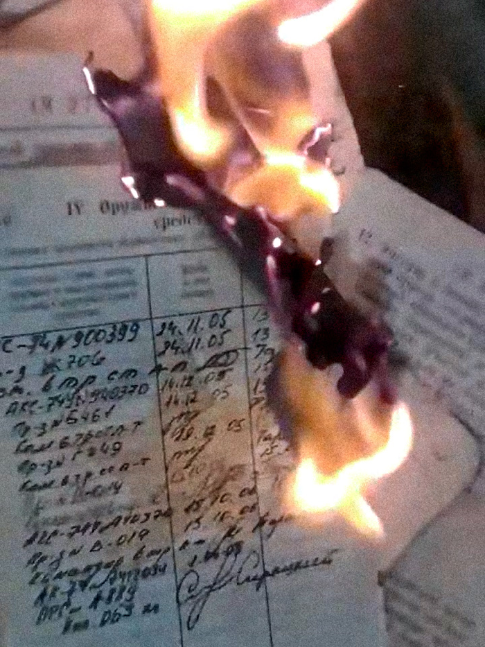 В конце тринадцатиминутного видео Бабин показывает свой военный билет, говорит: «Единственное, что мне жалко в этом билете — это фотография, на которой мне 18 лет». После этого он рвет билет и поджигает его со словами: «Ребята, нет войне! Слава Украине! Жыве Беларусь! Россия будет свободна!».