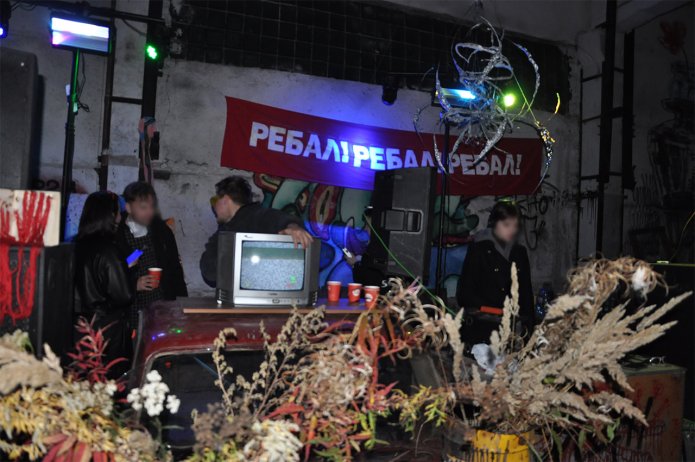 На выставке было несколько музыкальных команд. После приезда полиции они решили переместиться в другое место. Часть музыкантов ушла в центр «Культурный транзит» [на другом конце города], одна из команд под названием Rебal поехала на место, где проходила предыдущая ZABROSHKA, — там есть большое заброшенное помещение, бетонный ангар, где диджеи из объединения Rебal время от времени ставят музыку. Там они и организовали спонтанную вечеринку после сорванной выставки.