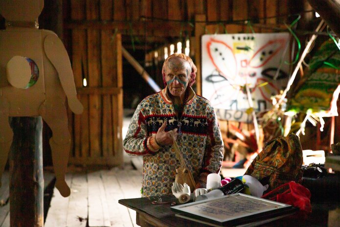 Еще один из участников выставки — Сергей Ивкин, уральский поэт и художник. Участвовать в выставке ему предложила его девушка, которой он помогал делать перформанс на «Заброшке». Сейчас он жалеет, что согласился.