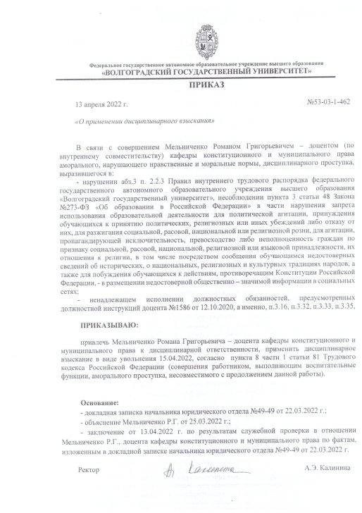 Меня уволили демонстративно и нагло, я до сих пор в шоке, как можно было так проявить неправовое поведение: человек стал прогульщиком буквально за день! Их главная задача была — соблюсти юридические процедуры, и они их соблюли. Пришли ко мне на кафедру и сказали: «Где Мельниченко?» Тогда у нас была дистанционная система, и я прямо в тот момент, когда они приходили, по распоряжению самого же вуза вел в «Зуме» лекцию большому потоку студентов.