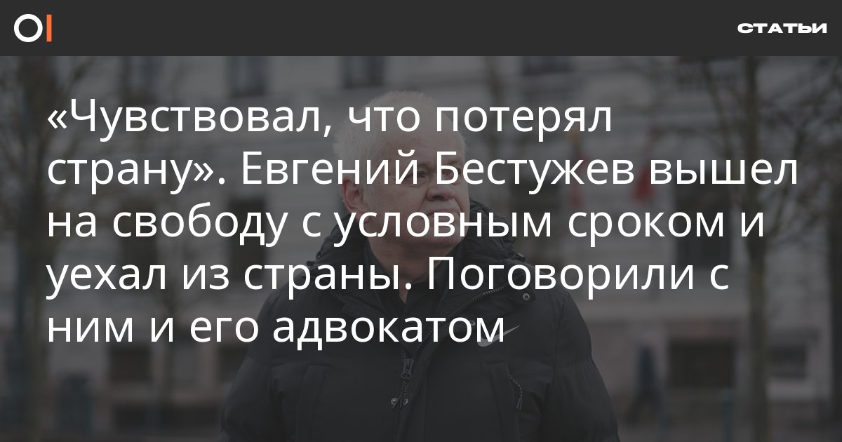 «Его отпустили в зале суда, и он говорит: „А я знал, что меня отпустят. Даже вещи оставил сокамерникам“. Отвечаю: блин, Евгений Леонардович, вы, видимо, прорицатель! Я вот не знал, с четырех утра не спал, а вы, оказывается, все знали!» — говорит Сергей Подольский, адвокат от ОВД-Инфо политолога Евгения Бестужева. 5 ноября Калининский районный суд приговорил Бестужева к пяти годам и трем месяцам условно по делу о военных «фейках» — это первый условный срок в Санкт-Петербурге по такой статье. В конце прошлого года политолог покинул страну.