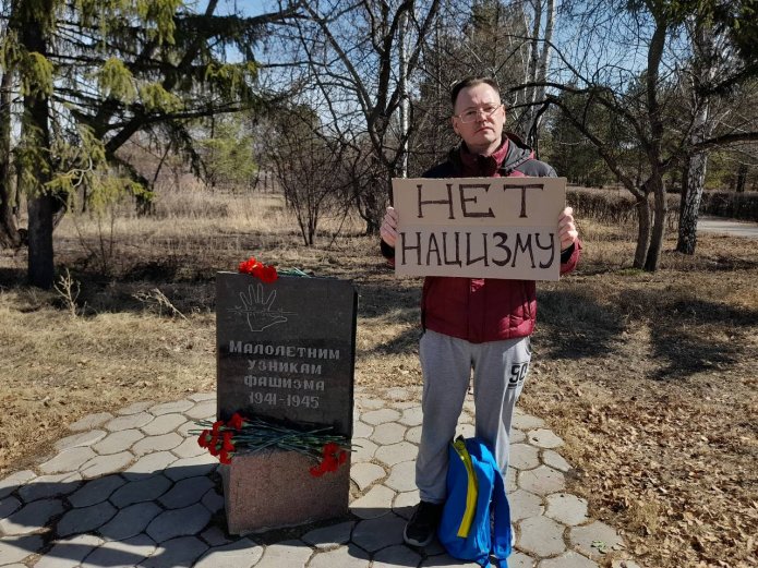 11 апреля Кинг вышел к памятнику малолетним узникам фашизма с плакатом «Нет нацизму». Через несколько дней активиста задержали у собственного дома. Силовики скрутили ему руки и забрали телефон, чтобы он не мог позвонить адвокату. В итоге его тоже оштрафовали на 30 тысяч по статье о дискредитации.