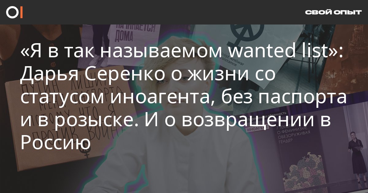 «Госдума пусть сосет жопу» — написала в соцсетях фемактивистка, писательница и преподавательница Дарья Серенко в ответ на закон о полном запрете иноагентам заниматься просвещением и образованием. В иноагентском реестре Дарья с начала 2023 года. Она все равно продолжит просвещать, образовывать — и по-прежнему не будет ставить иноагентскую плашку. ОВД-Инфо поговорил с Серенко о том, как государство пытается стереть ее из реальности, о протоколах безопасности для своей аудитории в России и о возвращении домой — даже если там будет новая диктатура.