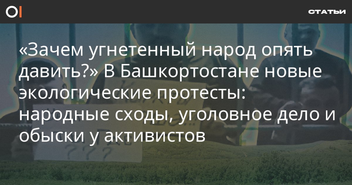 Народные сходы в защиту хребта Крыктытау, который решила разрабатывать «Русская медная компания», начались еще в 2020 году и утонули в повестке на фоне громких протестов вокруг шихана Куштау. Тогда, увидев, что происходит в соседнем районе, промышленники остановили работы. Но сейчас вернулись к ним снова — уже объявлены планы по геологоразведке. Местные жители возмущены, в села стягивают силовиков, к активистам приходят с обысками и предупреждениями. Разбираемся, что происходит.