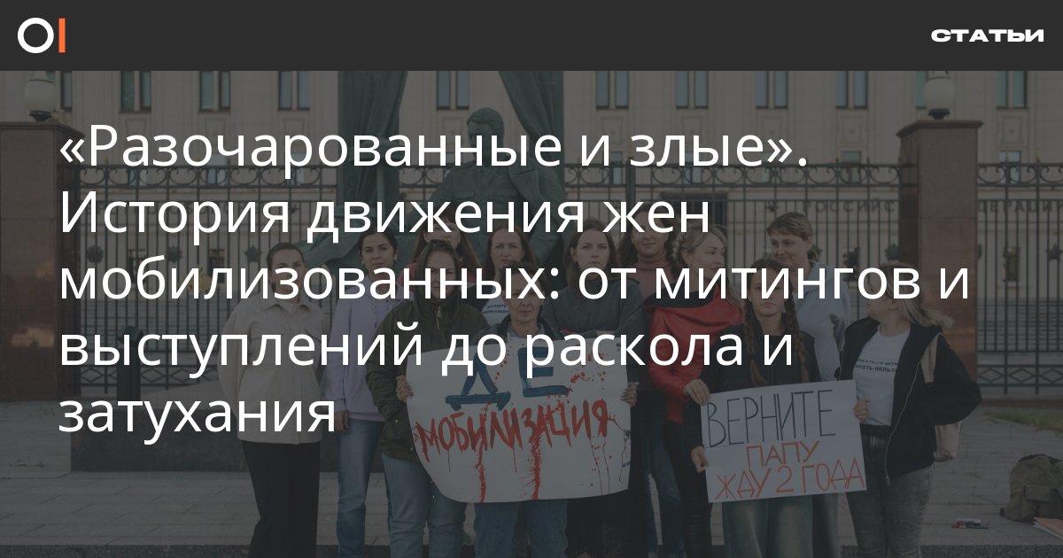 Вскоре после объявления мобилизации родственницы тех, кого забрали на войну, стали выступать с требованиями вернуть своих близких. Протесты разрастались, превращаясь в пестрое движение, внутри которого действовали группы зачастую с совершенно разными взглядами. Участниц травили и задерживали на акциях, к ним приходила полиция, за ними следили «эшники». Женщины подозревали друг друга в работе на силовиков или, наоборот, в сотрудничестве с «навальнистами». С последних пикетов прошел год. Голоса жен мобилизованных сегодня почти не слышны. Те, кто с воодушевлением боролся за своих мужчин, чувствуют разочарование и злость.