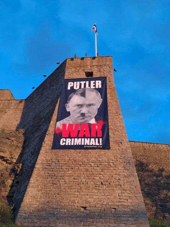 В сентябре 2025 года Московский городской суд приговорил к 10 годам колонии заочно Марию Сморжевских-Смирнову, директора Нарвского музея в Эстонии. Ее признали виновной в распространении военных фейков и реабилитации нацизма. Поводом стали баннеры с фотографиями российского президента, которые вывешивали каждое 9 мая последние три года на стене музея на границе с Россией. На баннере, вывешенном в 2025 году, Путина изобразили наполовину с лицом Гитлера, с надписью «Путин — военный преступник» на английском.