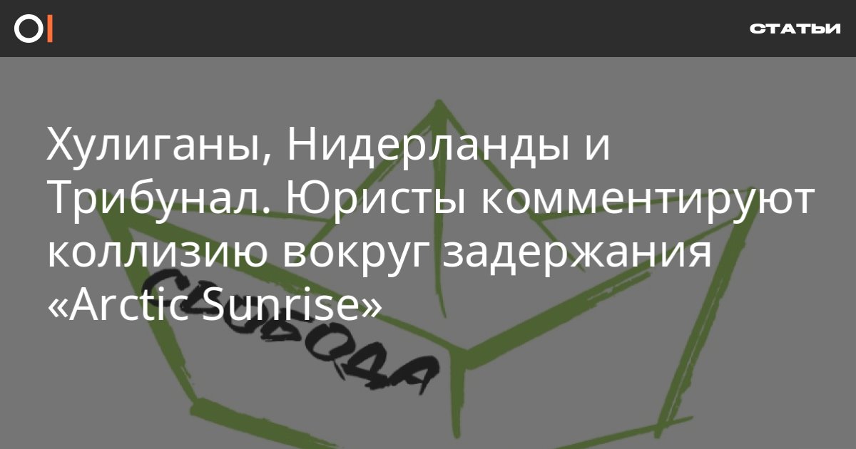 С точки зрения Европейской конвенции о защите прав человека и основных свобод, я бы квалифицировал действия против активистов «Гринпис» как грубейшее нарушение свободы выражения мнения, поскольку их акция была, пусть и маргинальным, но выражением их мнения по поводу добычи нефти в Арктике. За выражение мнения они лишены свободы, арестованы, против них возбуждено уголовное дело. Возможно, в дальнейшем будут поданы иски с жалобами на нарушение статьи 5 Конвенции — незаконное лишение свободы — и статьи 6 — лишение права на справедливое судебное разбирательство. Но прежде всего, концептуальная проблема в этом деле — это нарушение Статьи 10, гарантирующей свободу выражения мнения. В этом смысле дело «Гринпис» очень похоже на дело «Pussy Riot».