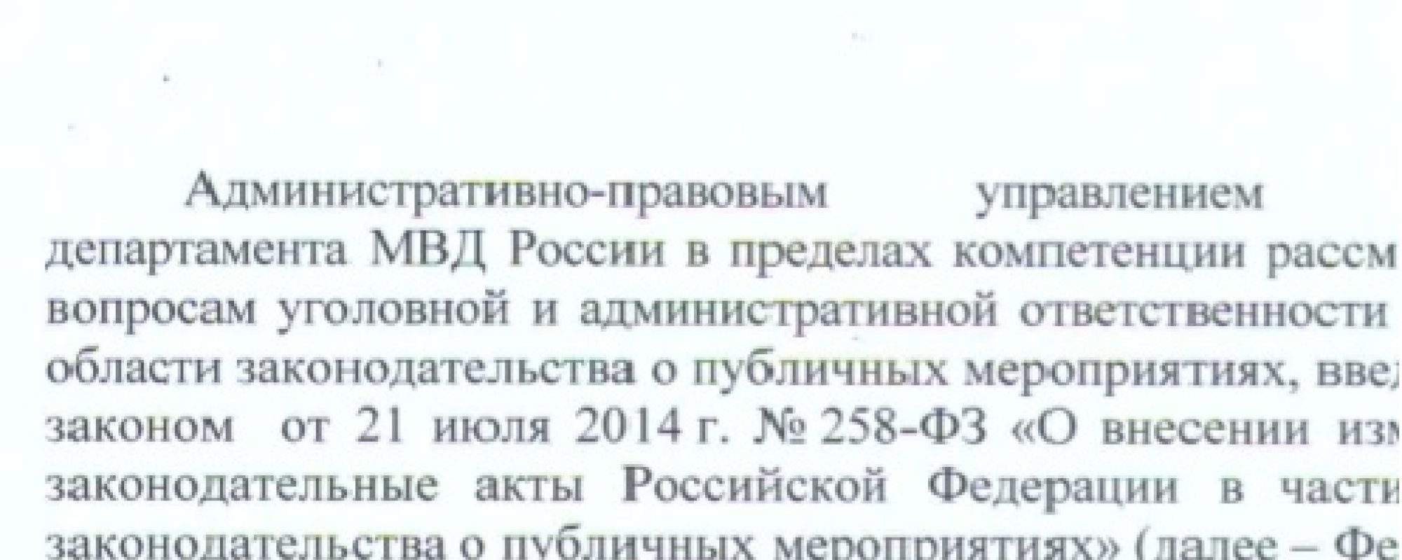 В июле 2014 года, пытаясь разобраться в сути очередных поправок к закону о митингах, ОВД-Инфо обнаружил в их тексте множество спорных, противоречивых и интригующих моментов, готовых поставить в тупик даже профессиональных юристов. Мы отправили список наивных вопросов в договорно-правовой департамент МВД, составлявший положительный отзыв на этот закон, и теперь публикуем его официальный ответ (PDF).