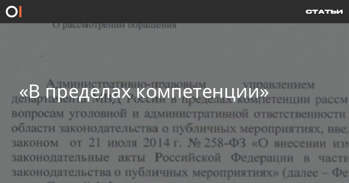 Татьяна Глушкова: Эту часть ответа МВД я, говоря простыми словами, не в состоянии осмыслить. Суть понятна: в Госдуму внесен недоработанный законопроект, он принят, и теперь МВД нужно каким-то образом извернуться в своем толковании этого закона, чтобы сделать вид, будто в нем нет внутренних противоречий, и вот оно решило истолковать его таким образом. Безусловно, они совершенно правы в том, что Федеральный закон «О собраниях, митингах, демонстрациях, шествиях и пикетированиях» закрепляет в числе прочего обязанности организаторов и участников публичных мероприятий выполнять законные требования уполномоченного сотрудника полиции. Было бы странно, если бы такой обязанности не было. И, естественно, неисполнение законного требования уполномоченного сотрудника полиции организатором или участником публичного мероприятия — это нарушение установленного порядка проведения публичного мероприятия, то есть нарушение статьи 20.2. Один из видов такого нарушения. Последний раз про законОтличие от статьи 19.3 состоит в том, что она предполагает ответственность за неисполнение любого законного требования сотрудника полиции. Это, скажем так, статья на все случаи жизни, потому что законных требований сотрудника полиции может быть огромное число, — это может быть требование прекратить нецензурно браниться, отойти от края платформы в метро, — и никакой закон не в состоянии предусмотреть все требования, которые могут исходить от полицейских во всех жизненных ситуациях. В случае же со статьей 20.2 мы опять имеем дело с тем самым квалифицирующим признаком, то есть если лицо не исполняет не просто абстрактное требование сотрудника полиции в абстрактной ситуации, а требование сотрудника полиции, обращенное к нему как к организатору или участнику публичного мероприятия, то, разумеется, действия такого лица должны квалифицироваться по 20.2, но не по 19.3.