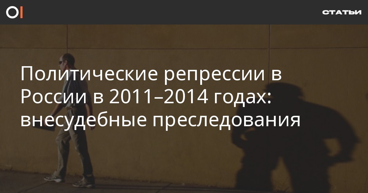 Политические репрессии в России в 2011–2014 годах: внесудебные преследования Дата публикации: 10 апреля 2015 года