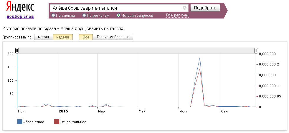 Парадоксальным образом интерес интернет-аудитории к этому маргинальному тексту возник именно после заведения дела за его распространение. «Пирожок» впервые зафиксирован в 2012 году, но до и после июля 2015 года его искали в Яндексе единицы, тогда как во время суда над петрозаводским чиновником им заинтересовались сотни человек.