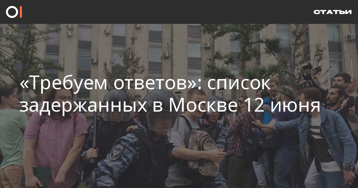 ОВД-Инфо публикует список задержанных в Москве в связи с акцией «Требуем ответа» 12 июня. Информация обновляется.