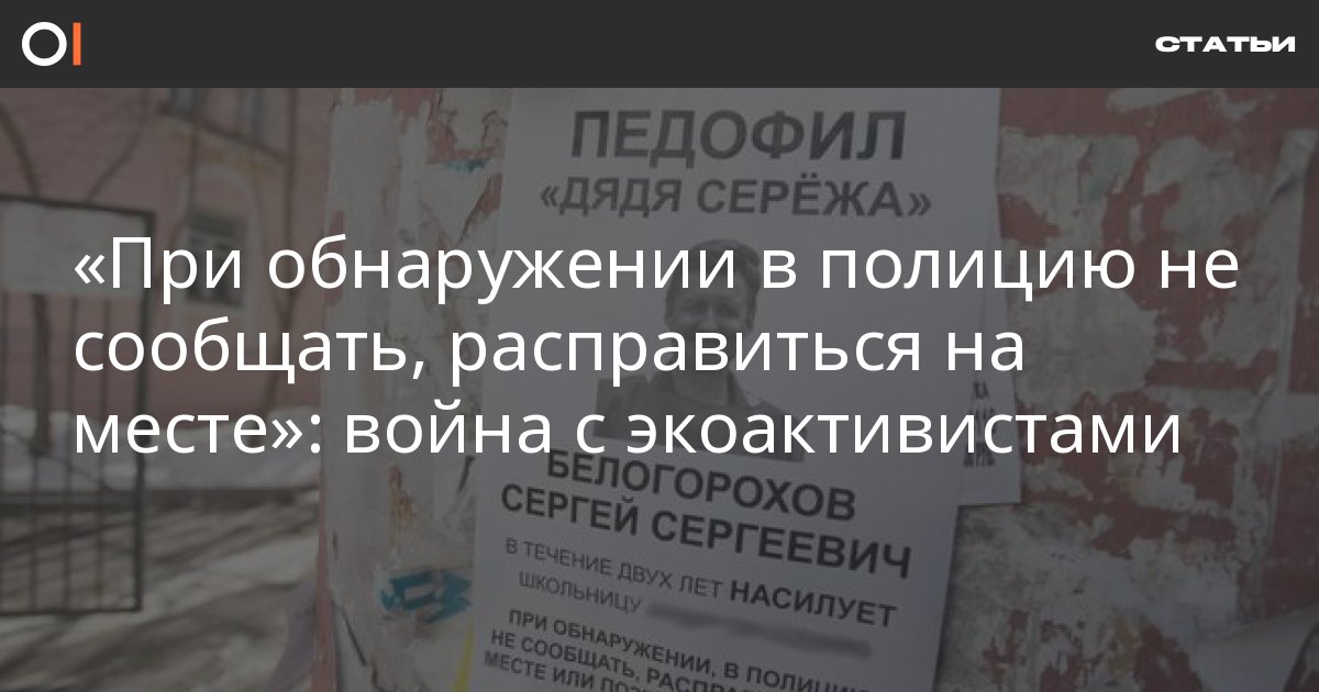 В ночь на 9 марта в Челябинске появились листовки, в которых местного экологического активиста Сергея Белогорохова обвиняли в педофилии. В листовках говорилось, что Белогорохов «в течение двух лет насилует школьницу», были приведены имя и фамилия, а также телефон, якобы принадлежащий родителям школьницы. Документ завершался фразой: «При обнаружении, в полицию не сообщать, расправиться на месте или позвонить родителям». При этом, как отмечает издание Chelyabinsk. Ru, в тексте использовано прозвище педофила, насиловавшего детей в интернате под Челябинском, а имя и фамилия предполагаемой школьницы совпадают с именем и фамилией активистки местного штаба Алексея Навального.