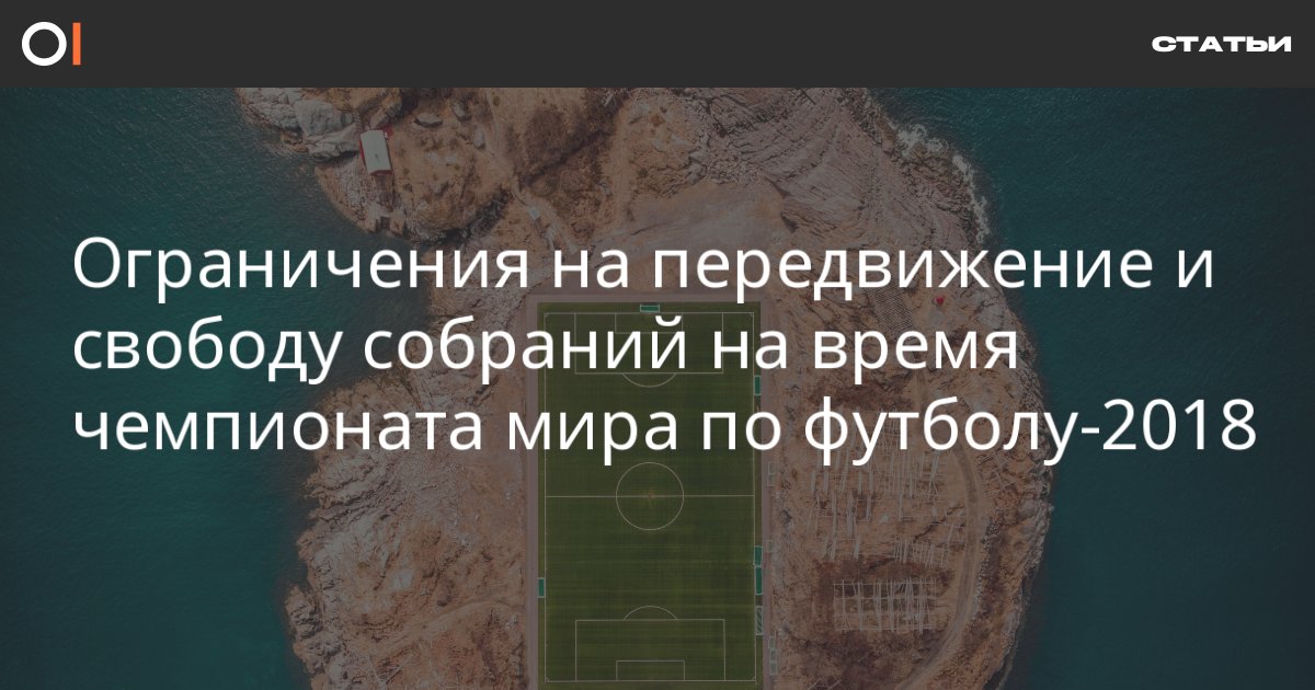 Россия встречает ЧМ-2018 президентским указом № 202, который вводит ограничения на передвижения граждан и проведение публичных акций в городах, где пройдут матчи. Согласно этому указу, с 25 мая 2018 года будут введены «усиленные меры безопасности» в период проведения ЧМ-2018. Специально для ОВД-Инфо указ изучили Денис Шедов и Наталья Ковыляева.