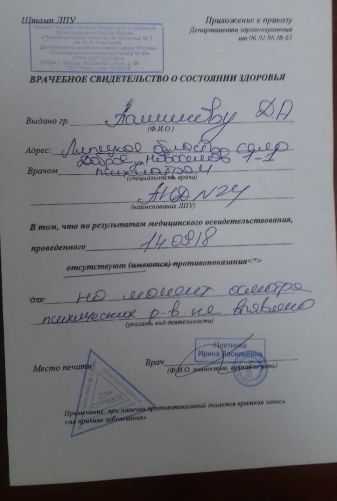Дмитрий Пашинов рассказал ОВД-Инфо, что не доверяет местным врачам и прошел добровольное освидетельствование в Москве, прислав фотографию соответствующей справки из Московской психиатрической больницы № 1 им. Алексеева. Пашинов утверждает, что посылал эту справку в суд, но, несмотря на это, заседание по иску Добровской районной больницы провели, даже не известив об этом журналиста. Суд постановил, что нужно провести принудительное освидетельствование. Пашинов намерен обжаловать это решение.