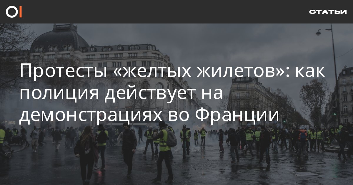 Акции «желтых жилетов» сопровождаются жесткими насильственными действиями полиции. Социологи Александр Бикбов и Фабиен Жобар рассказали ОВД-Инфо, почему так происходит, какое оружие применяет полиция и как она взаимодействует с демонстрантами.
