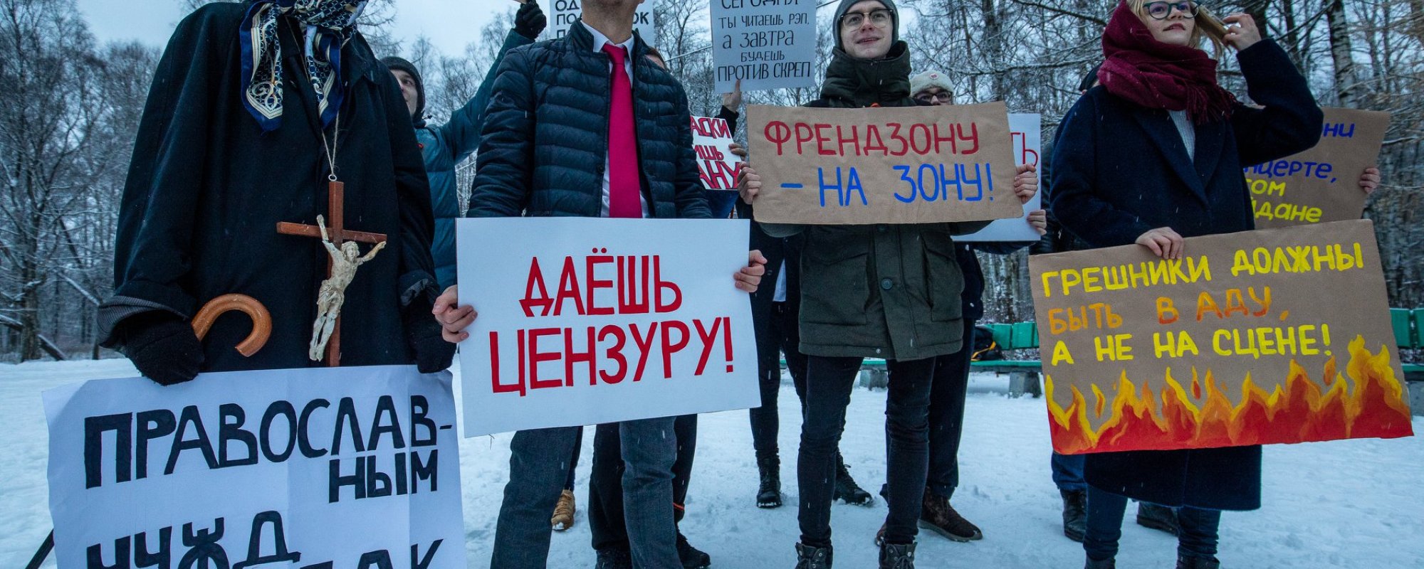 Перед входом на публичные мероприятия органы всё чаще устанавливают так называемые «палатки цензуры» — в них полицейские проверяют каждый плакат, баннер или флаг. Исключения не делают даже для стандартного флага России. ОВД-Инфо публикует репортаж с работы палатки на марше памяти Бориса Немцова и объясняет, законна ли подобная практика.