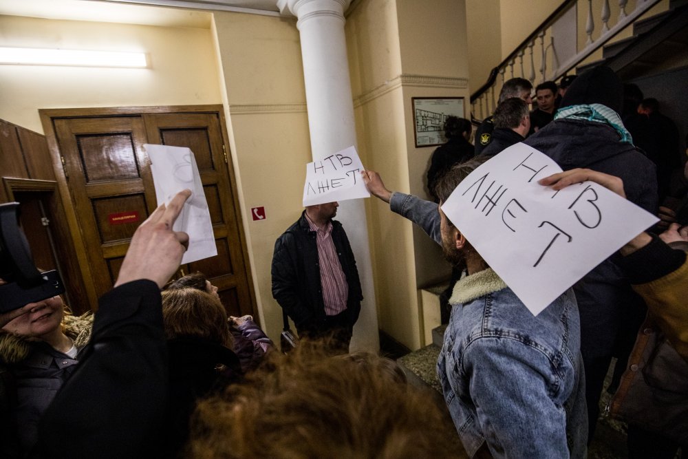 Не все помещаются в зал 224-го гарнизонного военного суда в Петербурге. Часть слушателей остаются за рамками металлодетектора. Приставы ссылаются на то, что мест нет, и не пускают даже в коридор суда. Позже выяснится, что среди слушателей затесалось несколько студентов, которые про дело слыхом не слыхивали. Кто-то попросил их прийти, и теперь под этим предлогом в суд не удается попасть даже корреспондентам «Новой газеты», ТАСС и «Росбалта». Позже в одном из студентов узнают местного МГЕРовца. (член Молодой гвардии Единой России — ОВД-Инфо) Издание «Фонтанка» напишет, что проход слушателей ограничили по инициативе ФСБ.