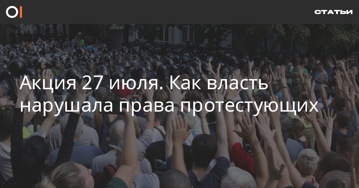 На акции за допуск независимых кандидатов, прошедшей 27 июля в Москве, задержали 1373 человек. Власть изначально была нацелена на жесткое подавление мирного протеста. После жестких задержаний, права участников протеста нарушались в отделах полиции, судах и спецприемниках. Нарушения стали беспрецедентными за всю историю наблюдения ОВД-Инфо. Мы собрали главное, что нужно знать о действиях властей во время и после акции 27 июля.