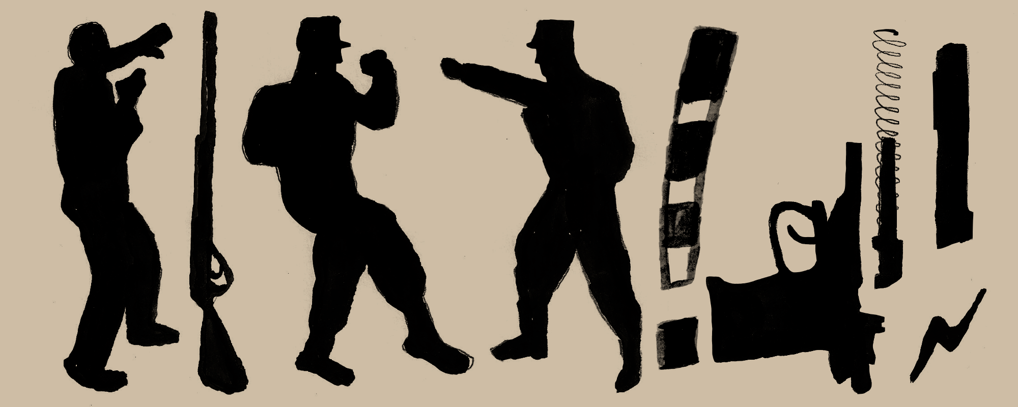 — Были изъяты <…> резиновые дубинки, бейсбольные биты, газовые баллончики, более 20 ножей, бронежилеты, сигнальные ракетницы. <…> У бойцов имелись своя военная форма, охотничье гладкоствольное ружье, газовые и травматические пистолеты, охолощенные автоматы АК-47, — из видео РЕН ТВ о задержании участников группировки «Национальный блок».