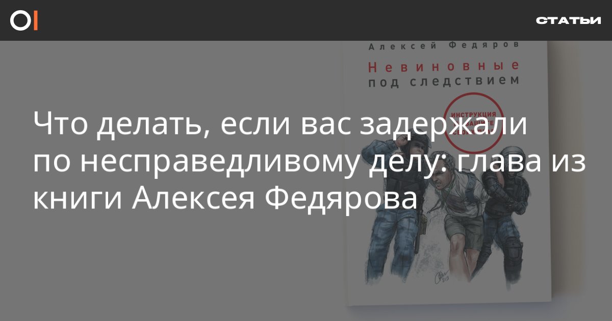 В издательстве «Альпина Паблишер» выходит книга «Невиновные под следствием» руководителя правового департамента фонда «Русь сидящая» Алексея Федярова. В прошлом прокурор и заключенный, а сейчас — правозащитник рассказывает, что делать, если вы оказались фигурантом несправедливого уголовного дела. ОВД-Инфо публикует главу из книги.