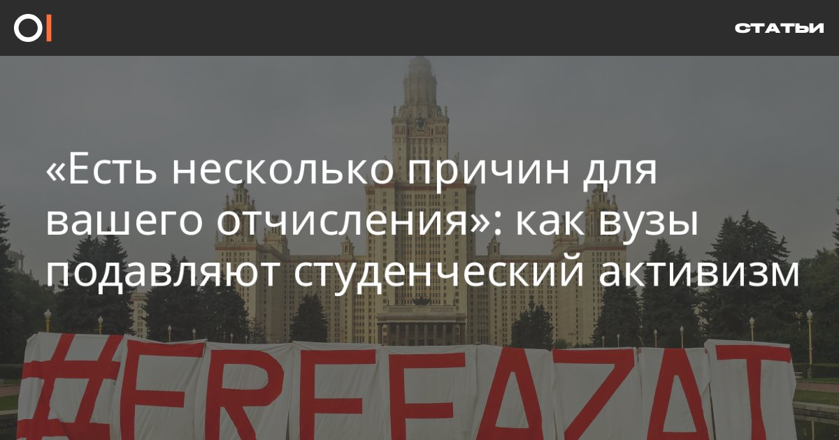 После летних протестов 2019 года студенты активно защищают свои права наравне с остальными: участвуют в митингах, ходят на суды и собирают подписи в поддержку политзаключенных. Рост политизированности привел к тому, что в крупнейших вузах появился особый подход к неудобным студентам. На примере нескольких историй ОВД-Инфо рассказывает, какие способы вузы используют для давления на учащихся и как этому противостоять.