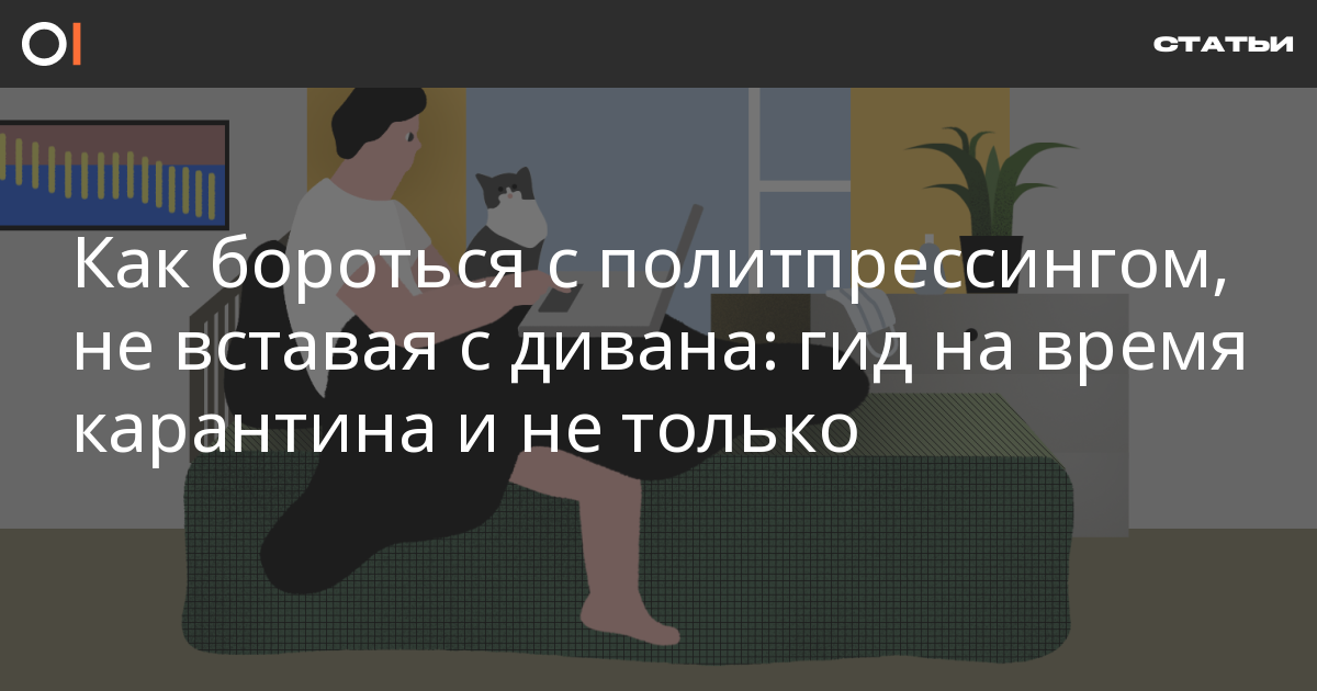 Раз протестовать на улицах пока нельзя, можно распространять информацию в интернете. Зайдите на сайт «Мемориала», посмотрите актуальный список политзаключенных. Почитайте о ком-то, кто вызывает у вас большую симпатию, на ОВД-Инфо или «Медиазоне». И напишите о нем или ней пост в своей любимой социальной сети. Информация защищает.