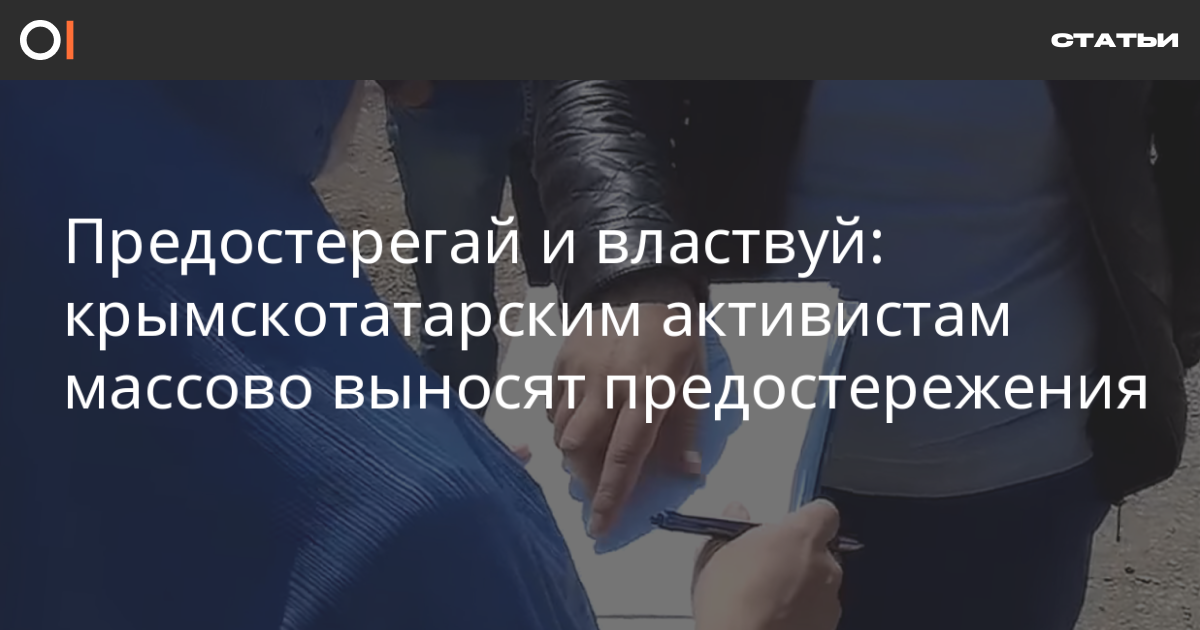 В последние месяцы в Крыму сотрудники правоохранительных органов массово вручают крымским татарам предостережения о недопустимости участия в несогласованных акциях, «противоправных действий» и «силового сопротивления властям». Активисты сообщают о как минимум 60 подобных случаях. ОВД-Инфо поговорил с несколькими людьми, которые оказались среди предупрежденных.