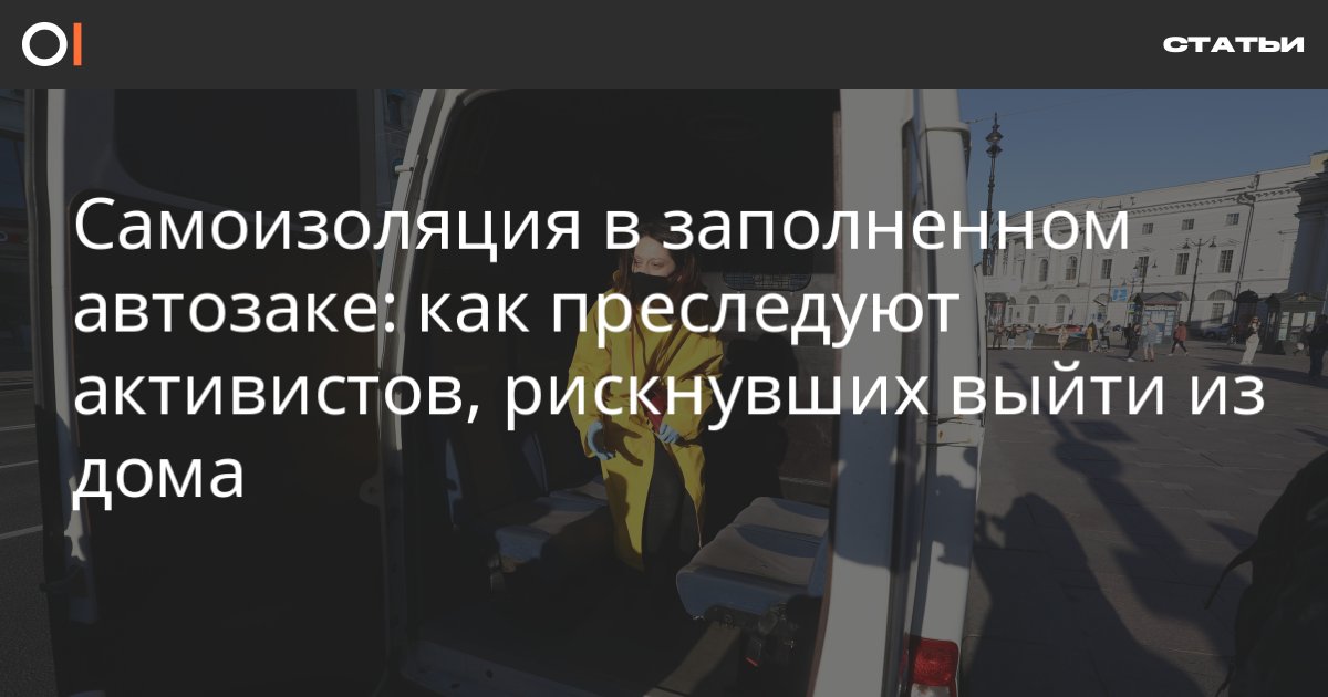 Глава юридической службы «Апологии протеста» Алексей Глухов убежден, что статьи о нарушении режима самоизоляции уже успели стать новым способом давления на активистов. По мнению юриста, они работают примерно как статья о неповиновении полиции (ст. 19.3 КоАП): если формально задерживать человека не за что, всегда можно сказать, что он ослушался полицейского или нарушил социальную дистанцию.
