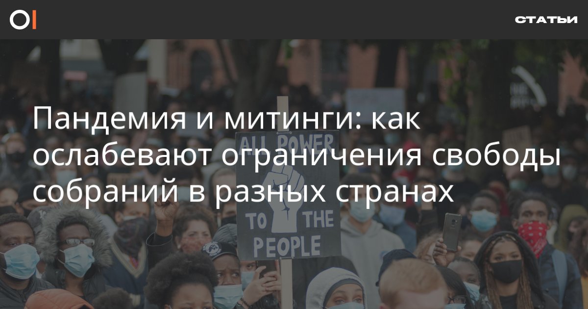 Пандемия привела к ограничениям свободы собраний по всему миру. ОВД-Инфо поговорил с жителями США, Финляндии, Германии, Франции, Израиля и ЮАР о ситуации в их странах. Всюду эти ограничения вызвали недовольство и постепенно уходят под давлением людей, у которых накопились поводы для протестов.