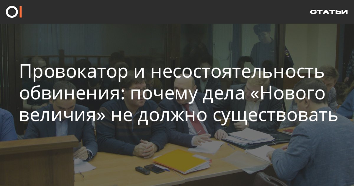 Координатор юридической помощи ОВД-Инфо Алла Фролова предполагает, что следствие готовилось подвести «Новое величие» под статью о террористическом сообществе — 205.4 УК. Но когда в марте 2018 года организация стала разваливаться, силовики решили арестовать подозреваемых без достаточной доказательной базы.