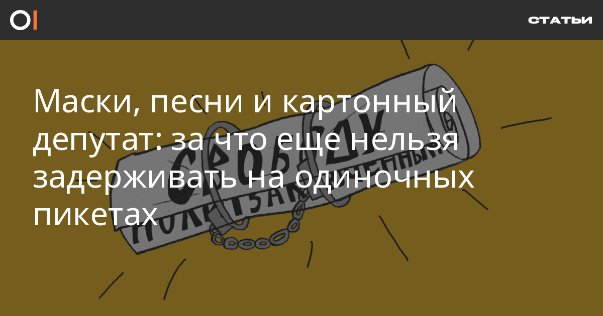 По словам старшего юриста ОВД-Инфо Надежды Кузиной, формально во многих регионах России до сих пор нельзя проводить «массовые и иные публичные мероприятия». Этот запрет вырос из мартовского требования главного государственного санитарного врача «ограничить проведение массовых мероприятий» вроде концертов, фестивалей и спортивных соревнований. К протестным акциям это на самом деле не относится: митинги, шествия, демонстрации и тем более одиночные пикеты выделены в отдельную группу «публичных мероприятий», для которых действуют особые правила. Однако главы многих регионов добавили их в свои указы, распространив таким образом ограничения даже на одиночные пикеты.