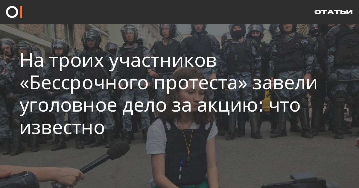 В ночь на воскресенье силовики пришли с обыском к троим активистам «Бессрочного протеста». Следственные действия проходили по трем адресам. К Ивану Воробьевскому в Москве около двух часов ночи пришли сотрудники Центра по противодействию экстремизму, ФСБ и следователи. Той же ночью силовики приехали сначала по месту прописки Мисик, но когда ее там не обнаружили, поехали на дачу в Подмосковье. В селе Ашитково обыскали дом, в котором находились Ольга Мисик и Игорь Башаримов. При обыске у активистов изъяли одежду и компьютерную технику. Затем всех молодых людей доставили в отдел полиции «Тверской». К ним выехали адвокаты от ОВД-Инфо.
