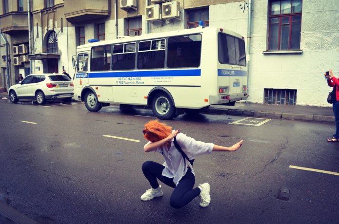 Это было 16 августа, в районе пяти часов вечера, у Белорусского вокзала. Я была с сестрой и подругой, ехала в сторону области по Ленинградке (Ленинградское шоссе — ОВД-Инфо). Мне перегородил дорогу автозак, на котором было написано «Второй оперативный полк». К моей машине подошли несколько сотрудников Второго оперативного полка и несколько людей в штатском — как можно предположить, сотрудники Центра «Э».