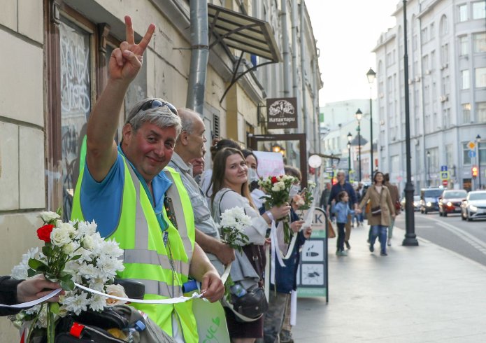 Обыскали, забрали предметы, которые посчитали не рекомендуемыми — например, газовый баллончик. Потом вернули. Я говорю, что у меня велосипед стоит, его украдут. Они отвечают, что никакого велосипеда не видели. Затем, правда, пересадили из автозака в машину ГИБДД, и вместо ОВД «Басманного» поехали составлять протокол по их линии.