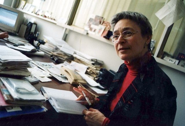 Журналистка «Новой газеты», специализировалась на нарушениях прав человека на Кавказе. Она летела на самолете, чтобы сделать репортаж о захвате заложников в школе в Беслане. Политковская впала в кому в Ростове-на-Дону после того, как выпила чай на борту самолета. Первые анализы Политковской после отравления по неизвестным причинам исчезли. Два года спустя журналистку застрелили в Москве за ее профессиональную деятельность.