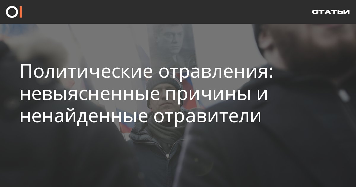 Оппозиционер Алексей Навальный совершал поездку по Сибири, плохо почувствовал себя и был госпитализирован в Омске. Он в коме, врачи не исключают отравления, сторонники Навального же считают отравление приоритетной версией. ОВД-Инфо вспоминает другие случаи политических отравлений. Практически ни одно из них не было расследовано.