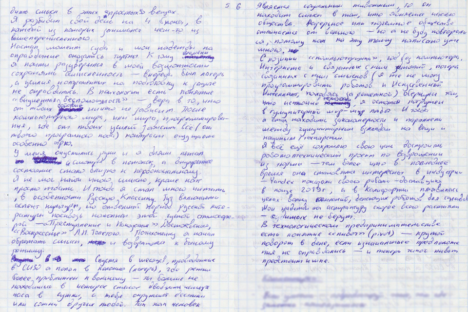 Я все еще сохраняю свою цель достроить робототехнический проект по возвращении из тюрьмы — тем более, в последнее время они становятся интересны в индустрии: Yandex показал своего робота-доставщика в конце 2019 года, а в Калифорнии появилась целая волна компаний, делающих роботов для бизнеса. Мои надежды на аспирантуру, скорее всего, растают — судимых не берут.
