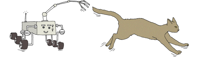 Моими задачами в последнее время были проекты, связанные с современным Искусственным Интеллектом. Самый последний и неоконченный — это автономный робот на гусеничном ходу с щупом. Он должен был самостоятельно прокладывать свой путь по квартире, искать кошку Тифу и щупальцами хватать ее. Кажется, что это не серьезно, но это же Марсоход Curiosity в миниатюре.