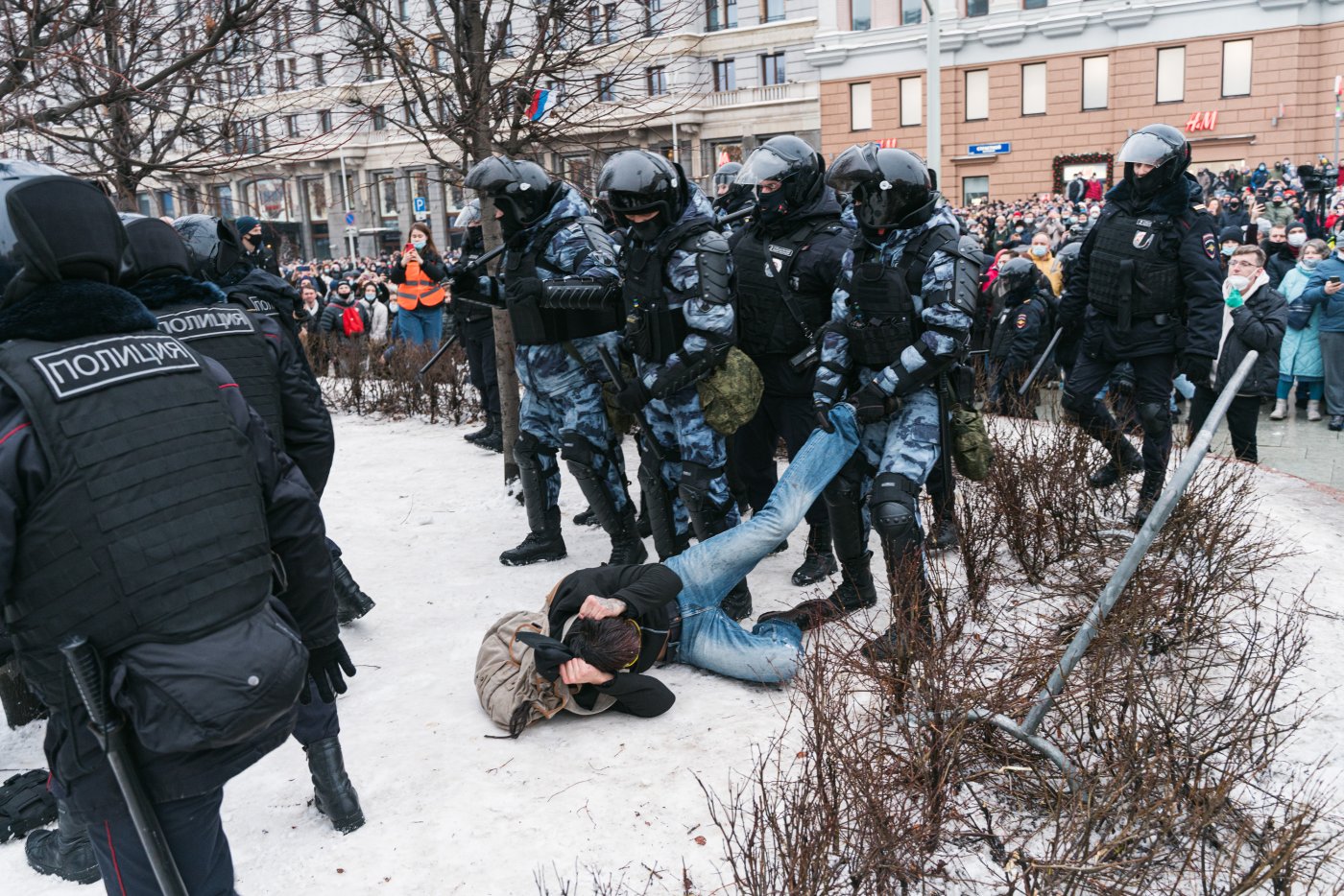 В Екатеринбурге силовики валят протестующих прямо в снег