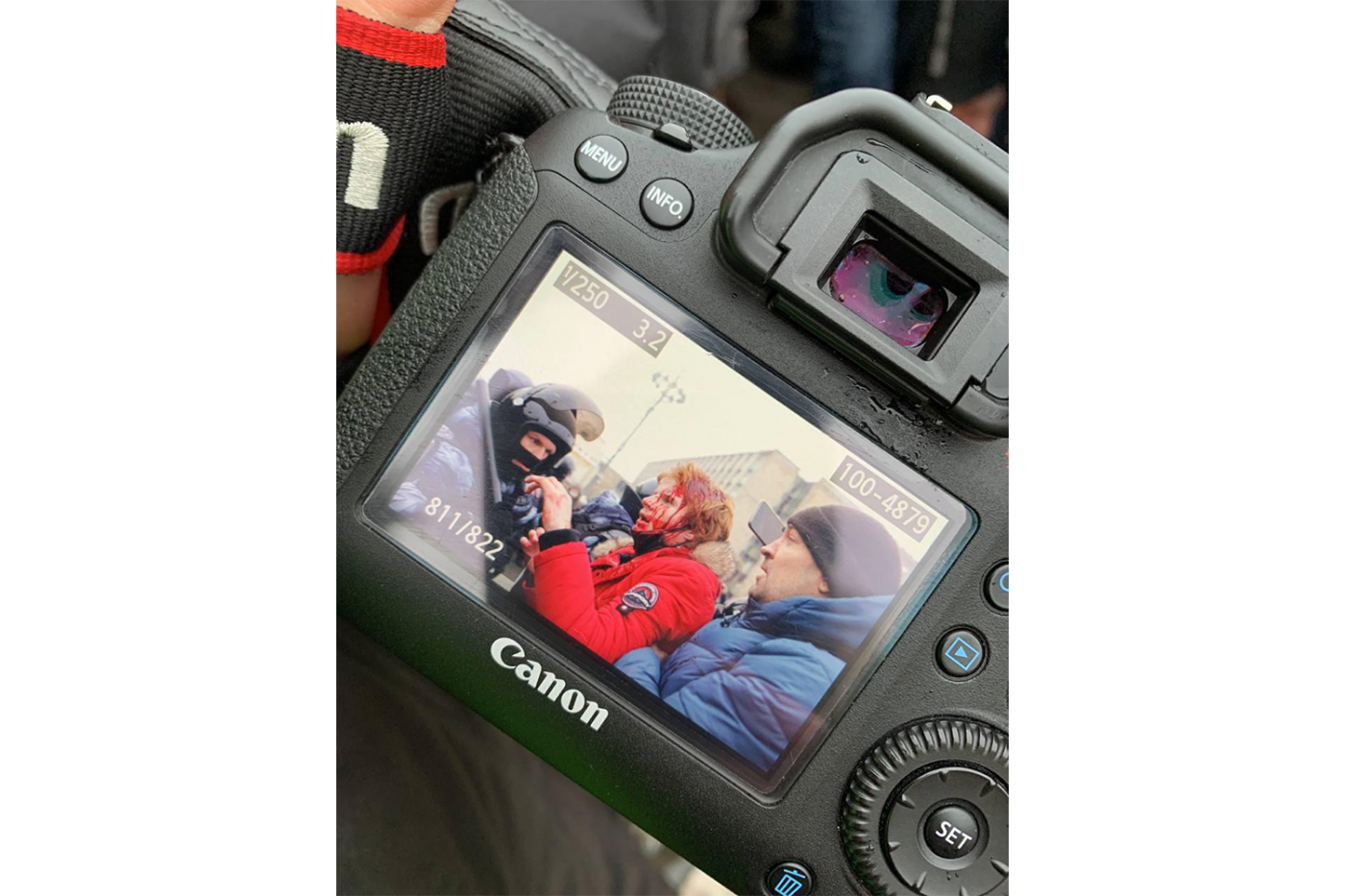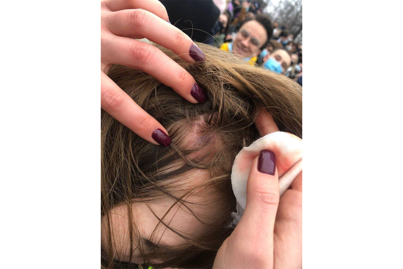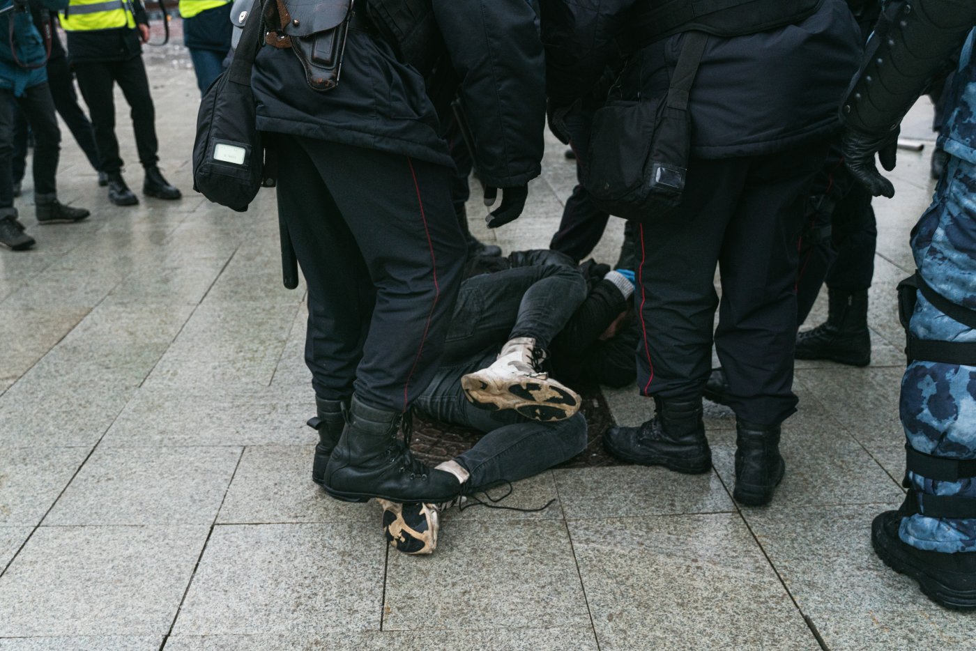 — Корреспондентку «Новой газеты» Лизу Кирпанову силовики повалили на землю и ударили дубинкой по голове во время работы на Пушкинской площади в Москве. Она стояла в центре толпы и была одета в яркий жилет для прессы;